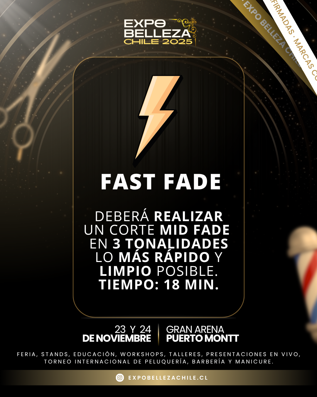 🔥 Perfecta para quienes buscan demostrar eficiencia y técnica bajo presión en el escenario más grande de la barbería chilena: Expo Belleza Chile 2025.